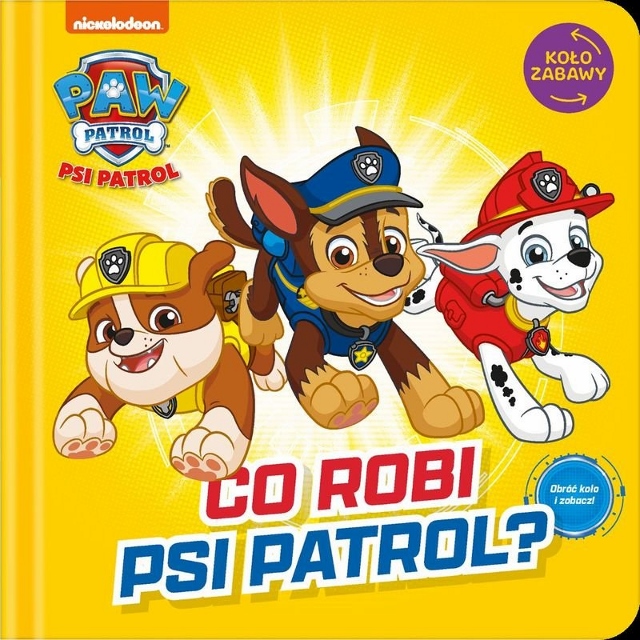 Co robi Psi Patrol? : obróć koło i zobacz! / Nickelodeon. - Warszawa : Media Service Zawada sp. z o.o., [2021]. - [14] stron : ilustracje ; 18x18 cm.
