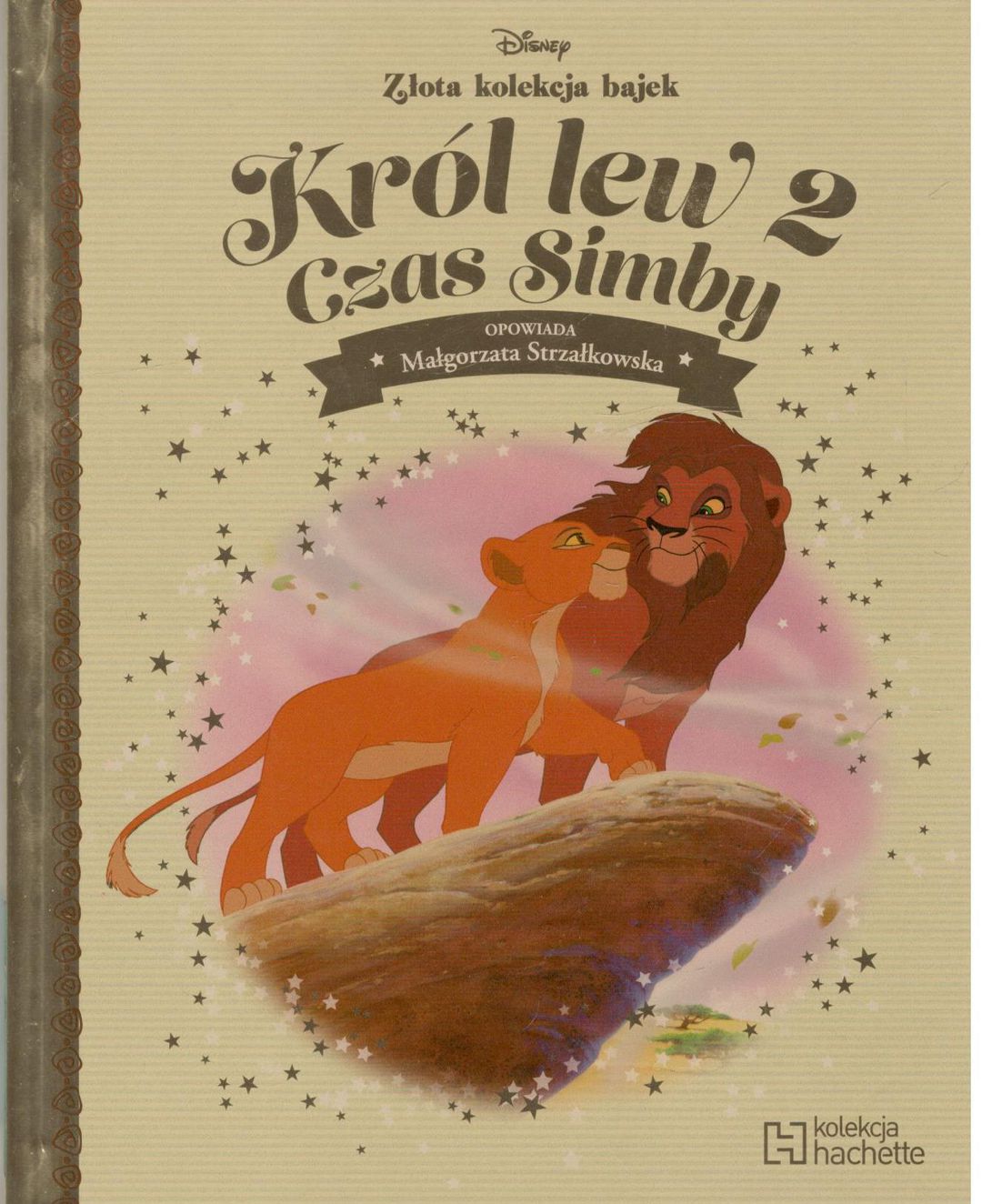 Doświadcz potęgi „upendi” czyli „miłości” i zobacz, jak córka Simby - niesforna Kiara - szuka przygód, uciekając przed czujnym wzrokiem ojca oraz jego wiernych przyjaciół Timona i Pumby. Kiedy Kiara spotyka Kovu, następcę Skazy, mimo nienawiści dzielącej oba stada pomiędzy małymi lwiątkami zawiązuje się nić przyjaźni. Szukając swego miejsca w odwiecznym kręgu życia Kiara i Kovu zakochują się w sobie i odkrywają, że ich przeznaczeniem jest zjednoczenie stad i zaprowadzenie pokoju w lwim królestwie. "Disney Złota Kolekcja Bajek" to wyjątkowe wydanie książek opisujących przygody kultowych bohaterów. Każdy tom opracowany w trosce o kulturę słowa, napisany poprawną polszczyzną, opowiada historię bohatera, która w przyjemny sposób dostarcza dzieciom nauki o świecie i jest źródłem wielu emocji. [Kolekcja Hachette]