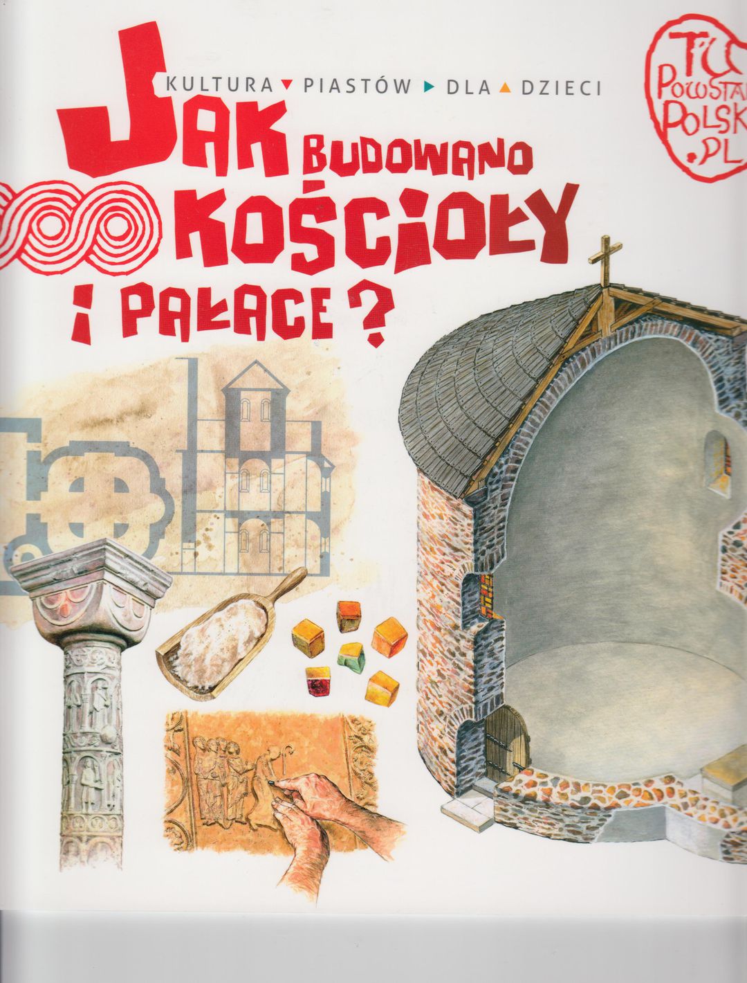Tu powstała Polska. Jak budowano kościoły i pałace – tomik w edukacyjnym cyklu o pierwszych Piastach. Kolorowe ilustracje i ciekawe opisy przybliżają młodemu czytelnikowi kulturę i życie w dawnych wiekach. Autor bowiem w sposób zwięzły i przystępny opowiada o sztuce romańskiej i gotyckiej.