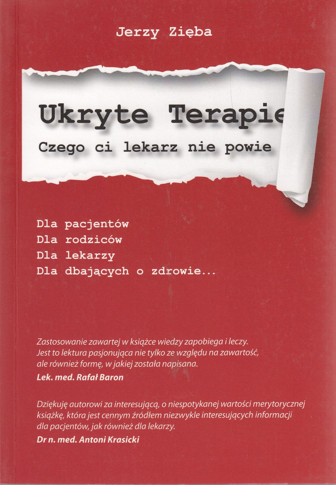 Doświadczenie autora w naturoterapii sięga już przeszło dwudziestu lat. Zagadnieniem, nad którym najwięcej w tym czasie pracował, były naturalne metody leczenia i zapobiegania przewlekłym nowotworom. Lata badań i analiz przyczyniły się do powstania „Ukrytych terapii” i innych publikacji, nieznanych jak dotąd medycznym środowiskom. Jerzy Zięba pozostaje na tym polu aktywny. Oprócz licznych publikacji w prasie, prowadzi też wykłady z naturoterapii, jest dyplomowanym hipnoterapeutą w Australii i USA oraz tłumaczem książki „Cholesterol – naukowe kłamstwo”. „Ukryte terapie” to przede wszystkim bogate i solidne udokumentowanie śmiałych, popartych badaniami teorii. Nie ma tu miejsca na domysły, domniemania czy myślenie życzeniowe, a całość podana jest czytelnikowi w sposób zrozumiały i intrygujący już od pierwszej strony. Pomaga wszystkim bez wyjątku, a najbardziej tym, wobec których farmakologiczne leczenie wyczerpało już swoje możliwości.