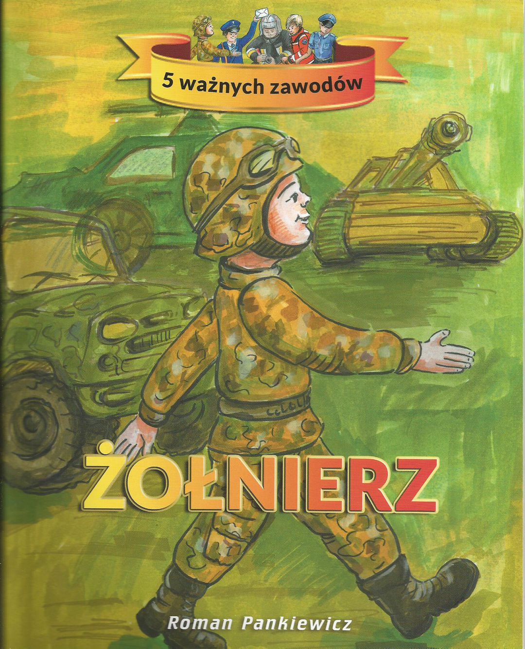 Bogato ilustrowana ksiązka dla najmłodszych o zawodzie żołnierza w dwóch wersjach językowych; polskim i angielskim.